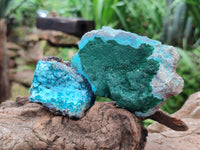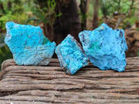 Chrysocolla with Malachite specimens from Kolwezi, Congo, are remarkable mineral assemblages from the Kolwezi mining district in the Lualaba Province, renowned for its rich copper deposits. These specimens display a mesmerizing palette, with Chrysocolla’s soft turquoise to teal hues forming smooth, botryoidal layers or crusts, interwoven with the lush, forest-green banding of Malachite, and accented by the rare, vivid blue of Shattuckite, which often appears in fibrous or crystalline clusters. The interplay of these copper based minerals,Malachite (a copper carbonate), and Shattuckite (another copper silicate), creates a dynamic contrast of textures and colors, ranging from silky and matte to glossy and striated.