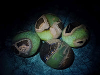 Septerye is a captivating gem celebrated for its earthy tones and intricate, web-like patterns that evoke ancient mosaics or cracked earth. Formed millions of years ago during the Cretaceous Period, it blends vibrant golden-yellow Calcite, rich brown Aragonite, and subtle grey Limestone, creating a striking contrast of colors and textures. Each piece, is perfectly polished into your favorite shapes, showcasing their unique designs and making every Septerye a one of a kind treasure for collectors and enthusiasts.