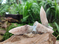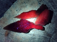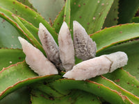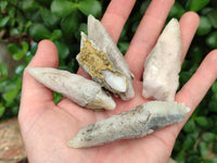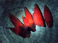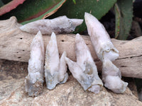 A Dozen Weird Criss-Crossed Spearhead Drusy quartz coated Scepter stemmed Fluorescent Calcite Centred crystal formations. These are very unique and are formed from quartz growing over the Calcite crystals and sometimes with dissemination of the central calcite, often leaving a hollow shall effect. Calcite fluoresces bright pink-orange-red under UV light.