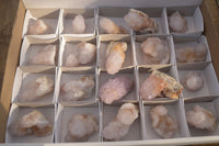Spirit Quartz, also known as Cactus Quartz, is a unique quartz habit found exclusively in the Boekenhouthoek deposits of South Africa. Since its discovery, specimens from these deposits have been highly sought after. Younger deposits exhibit exceptional dark and intense colours, while more recent ones showcase lighter shades. Some sections even produce a mix of Amethyst and Citrine coloration, giving rise to the name 'Ametrine Spirit Quartz.' However, Amethyst Spirit Quartz represents only 1% of the mined deposits. The majority of Spirit Quartz is 'white,' with subtle variations in colour. Current excavations yield Amethyst material ranging from very pale lilac to a darker purple tone, as well as plate-like specimens with the classic, rich colour intensity reminiscent of old-school deposits. Material lacking the unique spirit/cactus habit is referred to as Sunburst Amethyst due to its complex colour distribution. Despite the absence of the distinctive habit, the 'sunburst' material compensates with phantom-like colour distribution. Price is grade dependent. Items are as shown.Product Data