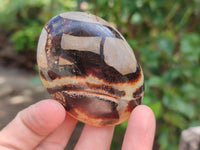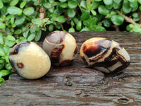 Septerye is a captivating gem celebrated for its earthy tones and intricate, web-like patterns that evoke ancient mosaics or cracked earth. Formed millions of years ago during the Cretaceous Period, it blends vibrant golden-yellow Calcite, rich brown Aragonite, and subtle grey Limestone, creating a striking contrast of colors and textures. Each piece, is perfectly polished into your favorite shapes, showcasing their unique designs and making every Septerye a one of a kind treasure for collectors and enthusiasts.