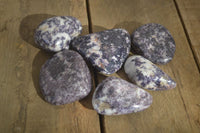 Lepidolite, a captivating member of the Mica group of minerals, is known for its lilac-grey or rose-coloured appearance. It stands as the most abundant Lithium-bearing mineral and serves as a secondary source of this valuable metal. As a phyllosilicate mineral, Lepidolite is part of the polylithionite-trilithionite series, contributing to its unique characteristics. Our collection features a delightful Lepidolite sourced from a newly established mine in Zimbabwe, which is then meticulously polished in South Africa. The material showcases a striking range of colours, spanning from red to purple, with remarkable consistency across all the pieces. This selection is characterized by its exceptional richness of colour, ensuring top-quality material. Lepidolite is renowned for its distinctive and unusual qualities, making it a truly funky and eye-catching addition to any collection. What sets it apart is its relative rarity, particularly in comparison to material from other regions. The affordability of this unique gem makes it an accessible choice for collectors and enthusiasts. Price is grade dependant. Items are as shown.Product Data