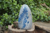 Introducing Blue Spinel Spotted Quartz, often referred to as Blue Dalmatian Stone, a rare and exciting material from Madagascar. This striking stone features a brecciated quartz or granite-like matrix, ranging in color from white to smoky, with gemmy zones of blue Spinel spot-like inclusions. Resembling the renowned K2 Afghanite in appearance, it offers a captivating blend of colors and textures.