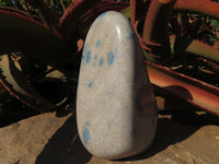 Introducing Blue Spinel Spotted Quartz, often referred to as Blue Dalmatian Stone, a rare and exciting material from Madagascar. This striking stone features a brecciated quartz or granite-like matrix, ranging in color from white to smoky, with gemmy zones of blue Spinel spot-like inclusions. Resembling the renowned K2 Afghanite in appearance, it offers a captivating blend of colors and textures.