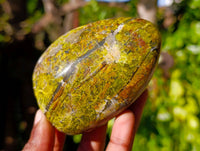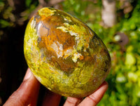 Our Green Opal from Antsirabe, Madagascar, is a mesmerizing gemstone that captivates with its unique visual characteristics. This opal displays a range of color intensities, from delicate pale yellow-green to deep, rich green hues, each piece showcasing its own distinctive pattern—whether it be a striking cracked-like texture or intricate opalized inclusions.