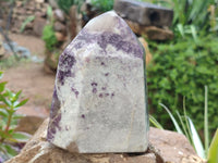 Lepidolite from Madagascar, featuring extraordinary needle-like white formations embedded within the matrix. This deposit is distinguished by sections of nearly brecciated peachy Smoky Quartz on select pieces, adding a unique contrast. Some specimens also showcase vibrant Pink Rubellite Tourmaline inclusions, further enhancing their appeal.