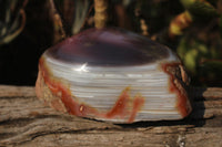 Sashe River Agate nodules from Zimbabwe are a distinctive type of Agate, They display a beautiful range of colors, including bright red, pink, earthy amber browns, and creamy whites, with intricate banding patterns unique to each specimen. The outer surface of these nodules typically has a rough, natural texture, while the polished interior reveals the fortified concentric ring Agate patterns.