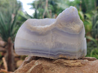 Blue Lace Agate from Nsanje, Malawi is a beautiful sought after variety of Chalcedony, celebrated for its light blue hues and intricate banding patterns. Characterized by soft, flowing lines and wavy designs, this stone has a delicate and serene appearance.