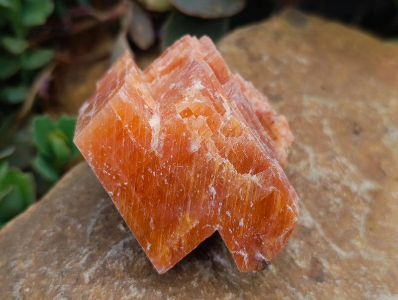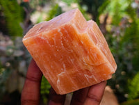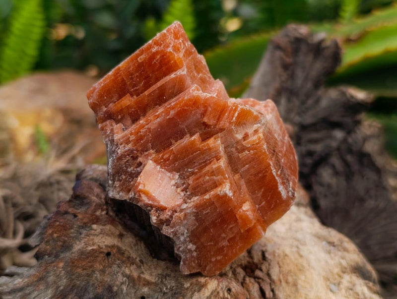 introducing the newly discovered Sunset Orange Calcite, a stunning addition to mineral collections! This captivating form of calcium carbonate exhibits a distinctive and intense rich orange hue that truly stands out. Calcite is renowned for its widespread occurrence and diverse color range, forming in Rhombohedral crystalline structures typically found in sedimentary rocks such as limestone and marble. Many specimens feature minor inclusions of Biotite Mica or Black Tourmaline schorl, enhancing their geological interest and uniqueness. Calcite is relatively soft and can be scratched easily, making it accessible for various applications and displays.