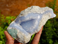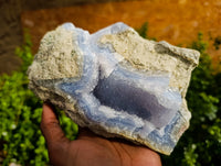 Blue Lace Agate from Nsanje, Malawi is a beautiful sought after variety of Chalcedony, celebrated for its light blue hues and intricate banding patterns. Characterized by soft, flowing lines and wavy designs, this stone has a delicate and serene appearance.