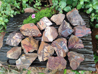Nguni Jasper, featuring intricate patterns reminiscent of the traditional Southern African Nguni cattle breed. This material displays rich, deep colors and a range of patterns, including chocolate brown, tan, ochre red, yellow, white, and orange. Some pieces include subtle Hematite inclusions, making them part of the banded ironstone Jasper family.