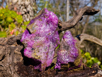 Stichtite, a rare mineral known for its vibrant purple hues. Found in small deposits in South Africa, this Chromium and Magnesium Carbonate mineral ranges in color from soft pinks and lilacs to deep purples. Formed as an alteration product of Chromite within Serpentine deposits, Stichtite's bright purple clusters contrast beautifully with its green Serpentine matrix.