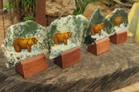 Handcrafted Decoupage Stone Slices with Grizzly Bear Fishing Design – Featuring Southern African Stones. Comes with a stand.