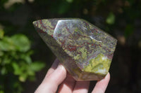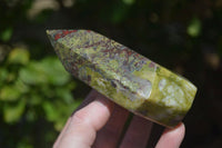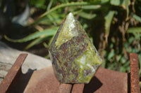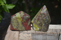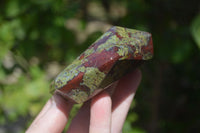Dragons Blood Stone Bastite, a rare material sourced from Tshipise, renowned for its thermal hot springs. This exceptional collection features a captivating blend of green, red, and earthy hues, reminiscent of Dragons Bloodstone. Bastite is a combination of Epidote and Piemontite, showcasing the geological complexity and rarity of this material. Piemontite, a member of the Epidote group. Epidote, often found in metamorphic rocks like Marble and Schistose formations, results from hydrothermal alterations in various igneous rocks.