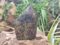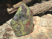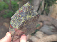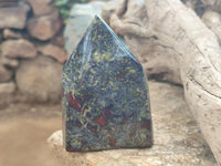 Dragons Blood Stone Bastite, a rare material sourced from Tshipise, renowned for its thermal hot springs. This exceptional collection features a captivating blend of green, red, and earthy hues, reminiscent of Dragons Bloodstone. Bastite is a combination of Epidote and Piemontite, showcasing the geological complexity and rarity of this material. Piemontite, a member of the Epidote group. Epidote, often found in metamorphic rocks like Marble and Schistose formations, results from hydrothermal alterations in various igneous rocks.