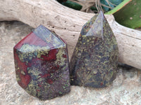 Dragons Blood Stone Bastite, a rare material sourced from Tshipise, renowned for its thermal hot springs. This exceptional collection features a captivating blend of green, red, and earthy hues, reminiscent of Dragons Bloodstone. Bastite is a combination of Epidote and Piemontite, showcasing the geological complexity and rarity of this material. Piemontite, a member of the Epidote group. Epidote, often found in metamorphic rocks like Marble and Schistose formations, results from hydrothermal alterations in various igneous rocks.