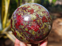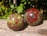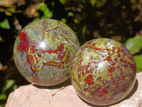 Dragons Blood Stone Bastite, a rare material sourced from Tshipise, renowned for its thermal hot springs. This exceptional collection features a captivating blend of green, red, and earthy hues, reminiscent of Dragons Bloodstone. Bastite is a combination of Epidote and Piemontite, showcasing the geological complexity and rarity of this material. Piemontite, a member of the Epidote group. Epidote, often found in metamorphic rocks like Marble and Schistose formations, results from hydrothermal alterations in various igneous rocks.