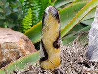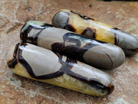 Septerye is a captivating gem celebrated for its earthy tones and intricate, web-like patterns that evoke ancient mosaics or cracked earth. Formed millions of years ago during the Cretaceous Period, it blends vibrant golden-yellow Calcite, rich brown Aragonite, and subtle grey Limestone, creating a striking contrast of colors and textures. Each piece, is perfectly polished into your favorite shapes, showcasing their unique designs and making every Septerye a one of a kind treasure for collectors and enthusiasts.