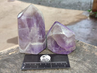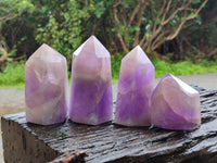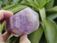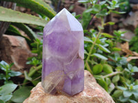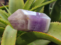 Chevron Amethyst from Madagascar is a striking variety of Amethyst that often features bold Chevron patterns formed by the interplay of deep purple Amethyst and Quartz. The distinctive V-shaped banding and linear patterns, along with the rich purple hues, are often accented by the earthy tones of Smokey Quartz, adding depth and contrast to the stone.