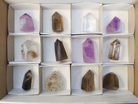 This tray offers a selection of polished, crystal points, featuring Amethyst, Smokey Quartz, Marion Quartz and Chlorite Quartz. It’s an excellent mix for small shops or online sellers looking to add variety to appeal to a growing customer base!