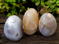 Banded Agate from Madagascar is a variety of Chalcedony known for its striking, layered patterns and vibrant color combinations. Characterized by bands of contrasting hues, including rich browns, creams, and earthy tones, this stone often exhibits a smooth, glossy surfaces that enhance its visual appeal.