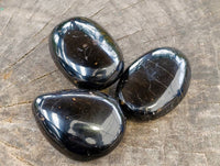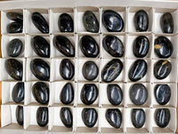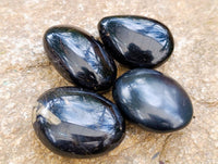 36 x Nice Mirror Shiny, Pitch Black Smaller 45-60mm Black Tourmaline Polished Palm Stones. Individually Made.