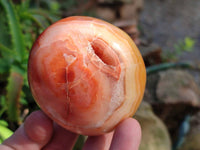 Carnelian from Madagascar, a variety of Chalcedony renowned for its rich reddish-orange to deep orange hues, caused by iron oxide impurities. This translucent gemstone features a smooth, polished finish with a waxy luster, and a Mohs hardness of 6.5-7, making it durable for jewelry or decorative use. Sourced from Madagascar's mineral-rich deposits, its vibrant color and natural banding patterns create a striking visual appeal, unique to each piece. Ideal for collectors or those seeking its reputed properties of boosting vitality and motivation, this gem embodies the island's geological charm.