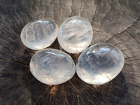 Polished Girasol Quartz from Madagascar is a variety of milky, translucent Quartz that exhibits a soft, glowing effect, often described as a "floating" or "inner light" appearance. This phenomenon, caused by light scattering within the stone, gives Girasol Quartz its ethereal, almost moonlit quality. When polished, the stone's natural glow is enhanced, highlighting its delicate internal features and subtle blue or pinkish hues.