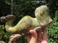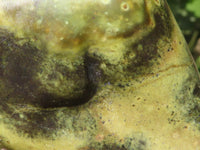 Leopard Stone: A Unique Serpentine from Nyanga, Eastern Zimbabwe: Leopard Stone, a distinct serpentine gem, is sourced from a handful of small mines nestled in Nyanga, eastern Zimbabwe. Its name is inspired by the striking black spots that adorn a pale background, creating a captivating visual effect. This remarkable gem is celebrated for its combination of varying green intensities, accentuated by contrasting black patterns, particularly the eye-catching spots. The harmonious blend of colors and distinctive patterns makes Leopard Stone exceptionally attractive and a true geological wonder. Despite its age, this material has a rich history, often used in traditional Shona art carvings. However, the art of polishing it in a classical sense had waned over the years, rendering it a "new" material once again. The meticulous polishing process is skillfully performed by expert Zimbabwean lapidaries, resulting in brand new items that are a perfect fit for any retail space seeking something truly unique and different. Embrace the beauty of Leopard Stone, a gem that has returned to the market, and explore its captivating allure. The items presented are an exciting addition to the world of gemstone treasures, ready to adorn your collection or retail space with their unique charm. Price is grade dependant. Items are as shown.Product Data