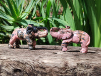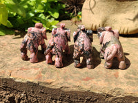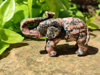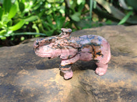 Polished beautifully carved Rhodonite "Pink Elephants on Parade" :) Carving from Madagascar