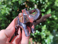 Beautiful Tiger Iron Banded Ironstone Elephant Carving with gorgeous Yellow & Gold Tigers Eye, Red & Black banded Jaspers From Australia