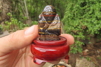 Polished Tiger Iron Far Eastern Carved Gods on Wooden Stands - sold per Set of 7 - From Australia