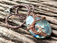 Handcrafted Copper-Wrapped Crystal Pendants - Ajoite, Aragonite, Labradorite, Smokey Quartz, Rhodonite, Serpentine and Stichtite