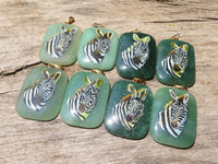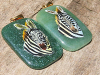 Beautiful Polished Rectangle Aventurine Pendant with Hand Painted Zebra