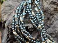 Beautiful Polished Silver Hematite and Freshwater Pearl Triple Strand Beaded Necklace