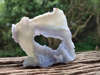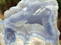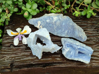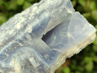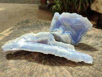 A Tray of 3 Natural Etched Blue Chalcedony Geode Specimens with Drusy and Crystalline Centres. (Blue Lace Agate with No Matrix)