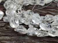 Rock Crystal Quartz beads from Madagascar showcases the natural clarity and brilliance of high-quality Quartz. The Quartz is carefully tumbled to enhance its glassy transparency, with subtle inclusions and internal veils adding unique character to every piece. Sourced from Madagascar's renowned quartz deposits, these beads are perfect for crafting jewelry and wire-wrapping.