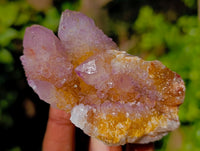 Spirit Quartz, known for its "drusy" formations and distinctive "Cactus Flower" crystal structures. From the Boekenhouthoek deposits in South Africa, these specimens feature colors ranging from lilac and purple to ametrine hues. While most Spirit Quartz is white, about 15-25% show classic Amethyst colors, with some displaying the Ametrine effect from yellow Limonite. Each piece is carefully cleaned to ensure quality. Add a touch of Spirit Quartz to your collection and enjoy its natural beauty.