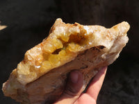 Lemonite purely due to the colour richness of the yellows! Limonite quartz often called golden healer quartz is quartz which is yellow in colour, often as a result of a patina which can be removed, but in rare occasions the limonite occurs as an inclusion to the quartz making the colour permanent and allows for specimens to be cleaned to perfection in acid without impacting on the colour intensity! Limonite quartz is not at all common! This new material is being sourced in Zambia and has rich beautiful colour, with specimens being 100% selected and mostly intact else with minor damage. This is a very exciting new discovery! The material tends to occur in complex vug like pockets in a fairly light weight host matrix. All specimens have been put in acid, unless otherwise stated. Absolutely stunning and inexpensive quartz variety! Price is grade dependant. Items are as shown.Product Data