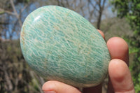 Zimbabwean Amazonite, a natural turquoise-colored gem Feldspar. This material often features distinctive white banding and, occasionally, small specular Smokey Quartz inclusions or traces of black specular minerals. The combination of the classic turquoise hue against a marbling of white to cream-colored material creates striking and beautiful patterns.