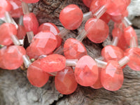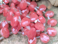 Strawberry Quartz is a variety of quartz known for its soft pink to reddish color, often caused by inclusions of iron oxide or mineral traces within the crystal. This stone typically has a translucent or opaque appearance, with a sparkling or "strawberry" effect due to its internal inclusions. Strawberry Quartz is often used in jewelry and decorative items, valued for its warm, attractive color and smooth texture. This product is dyed red, from China.