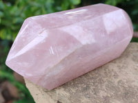 Half a Dozen Polished Gemmy Double Terminated Rose Quartz Crystals with Rainbow Veil Inclusions.