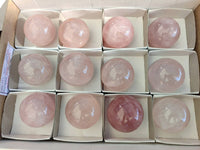 A Dozen Polished Star Rose Quartz Spheres with Rainbow and Veil inclusions. Beauties!