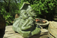 The material has been given various common names over the past few decades and has been commonly used in Zimbabwe Shona carvings for many decades. The colours of the green are variable across pieces, with often swirling or banded complex patterns due to the colour intensity changes across pieces.
