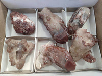 Red Hematoid Phantom Quartz from Karoi, Zimbabwe, is an exceptional quartz variety featuring vivid red to reddish-brown "phantoms" within clear or milky quartz. These phantom formations occur as Hematite inclusions that settled during different stages of the crystal’s growth, creating ghost-like layers or shadowy outlines that echo the internal crystal structure.