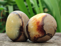 Septerye is a interesting gem recognised for its earthy tones and intricate, web-like patterns that evoke ancient mosaics or cracked earth. Formed millions of years ago during the Cretaceous Period, it blends vibrant golden-yellow Calcite, rich brown Aragonite, and subtle grey Limestone, creating a striking contrast of colors and textures. Each piece, is perfectly polished into your favorite shapes, showcasing their unique designs and making every Septerye a one of a kind treasure for collectors and enthusiasts.