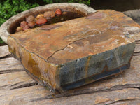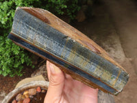 Tiger's Eye is a chatoyant gemstone that is usually a metamorphic rock with a golden to red-brown colour and a silky lustre. A Quartz group member, Tiger's Eye and the related blue-coloured mineral Hawk's Eye gain their silky, lustrous appearance from the parallel intergrowth of Quartz crystals and altered amphibole fibres that have mostly turned into Limonite. Our Tigers eye mostly comes from the Northern Cape of South Africa. Occurring in mostly thin bands of chatoyant golden, blue or red colours. Blue and Red material is substantially less common with other banded or variegated forms being available sporadically. Price is grade dependent. Items are as shown.